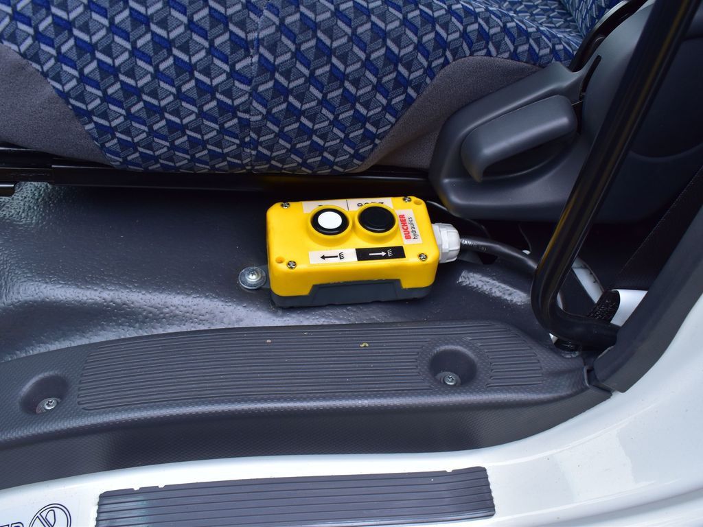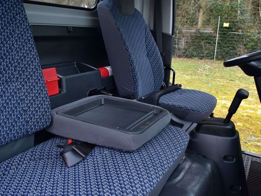 Inside the cab, the truck is equipped with three-person seating, air conditioning, AM/FM/CD Bluetooth radio, and practical controls designed for driver comfort and productivity. Safety and durability are supported by four-wheel disc brakes with ABS, hydraulic brakes with vacuum assist, all-season tires, and a heavy-duty suspension setup.