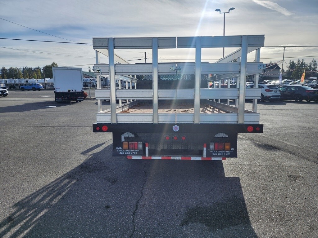 Upfitted with a 14-foot stake side flatbed, this truck offers flexible hauling capability for a wide range of applications. The flatbed design makes loading and unloading easy while maximizing usable cargo space.