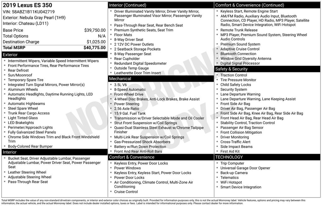 2019 LEXUS ES 350